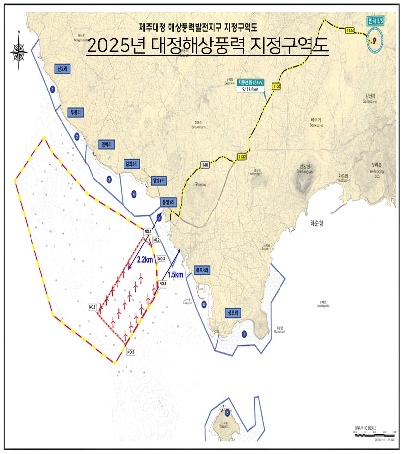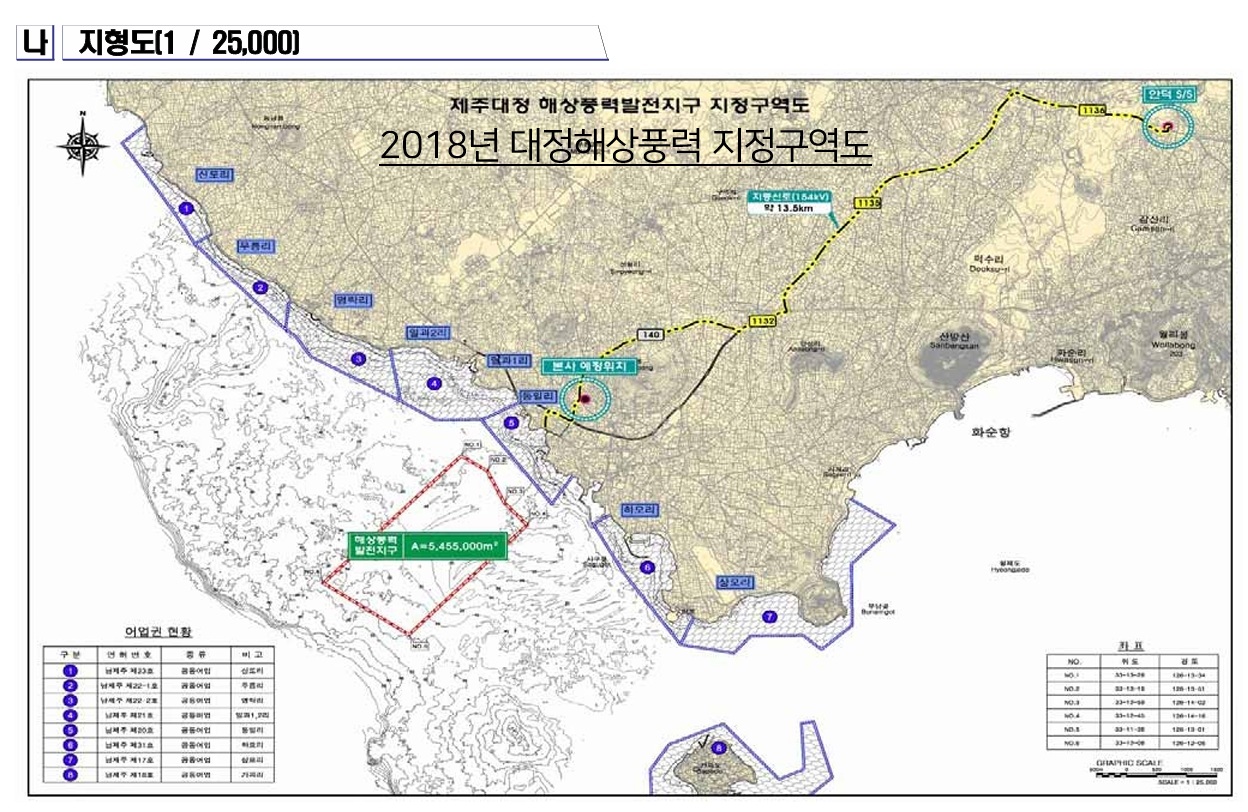 만약 대정해상풍력이 부유식 발전으로 사업 내용을 완전히 변경하거나 사업 위치를 해안선에서 10km 정도 이격한 곳으로 크게 변경하여 연안 생태계와 연안정착성 해양포유류에 미치는 피해를 최소화한 채 진행하기로 하였다면 제주도정이 다시 주민 의견을 물어볼 수 있을 것이다. 그런데 아무런 계획이나 내용 변경 없이 이미 도민이 거부한 사업을 그대로 다시 추진하겠다는 것은 ‘도민 주권’을 완전히 무시한 처사가 아닐 수 없다. 바뀐 것이 있다면 대정해상풍력 측에서 개별 보상금 지급을 약속하면서 동일리 주민을 회유하여 2023년 부결된 주민총회 의사를 2024년 총회에서 돈으로 뒤집었다는 점과 사업예정지에서 직선거리로 약 8.6km 정도 떨어진 대정읍 신도리 해역이 2025년 남방큰돌고래 보호구역으로 지정되었다는 점이다. 그리고 이 두 가지 사실 모두 대정해상풍력을 원안 그대로 추진할 수 없다는 점을 더욱 명확히 하고 있음도 분명하다.