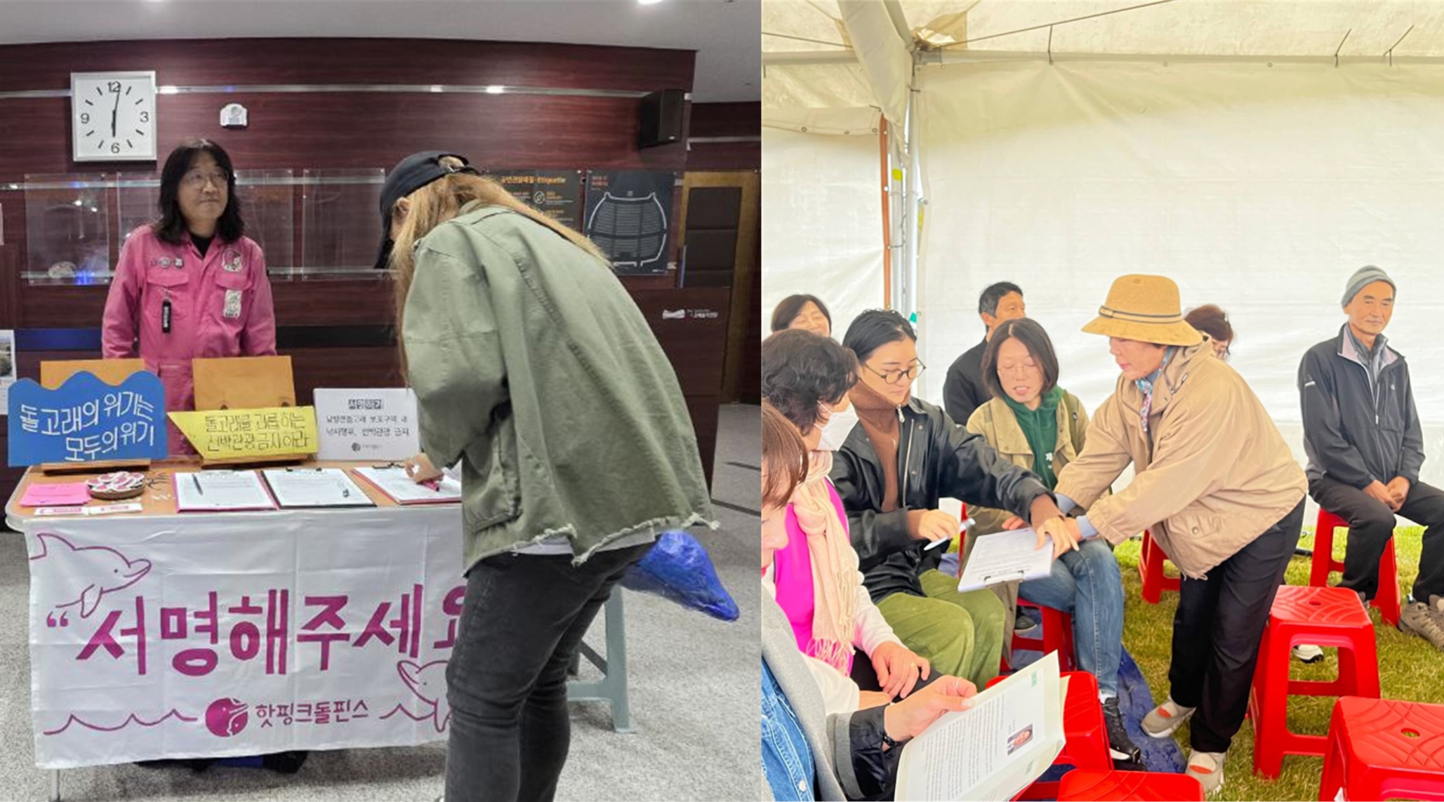 ▲2025년 11월 한 달간 온라인과 오프라인을 통해 '남방큰돌고래 보호구역 내 낚시행위, 선박관광 금지하라' 서명에 1,750명이 동참했다. 사진 = 핫핑크돌핀스 |